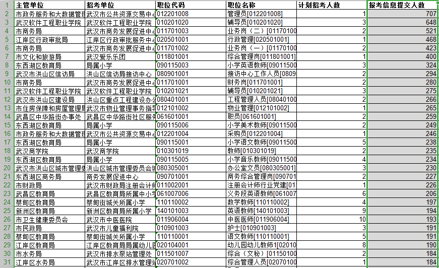 各职位报考人数统计表(截止时间:2019年2月20日8点30分) |