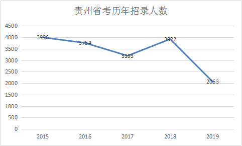 2019年贵州公务员考试招考职位数共招录公务员(人民警察)2063名。相比于2018年招录的3922人减少了近一半。