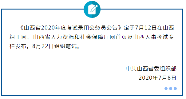 重要通知:2020年山西公务员考试公告7月12日发布,8月22日笔试!晒图为证: