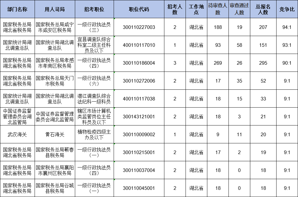 2024国考湖北地区竞争最激烈的十大职位【截止到17日16时】
